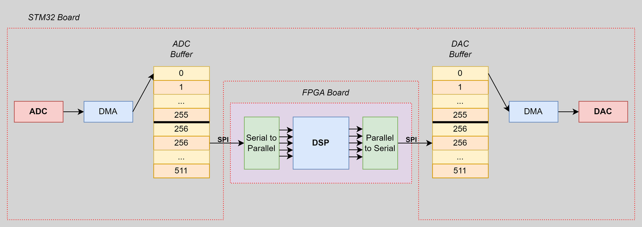 FPGA and STM32 [Stacked Connection using SPI] for DSP applications
